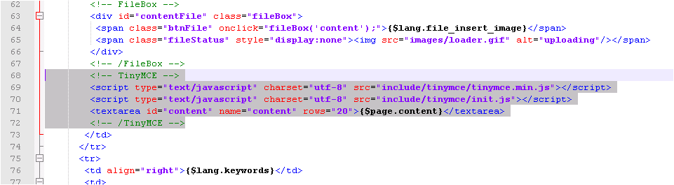 在Douphp当中,新增文章、产品等页面都有编辑区,我们去修改这些相应页面的代码。这里以 page.htm 为例。( page.htm 为“单页面管理”模块)