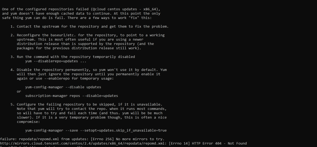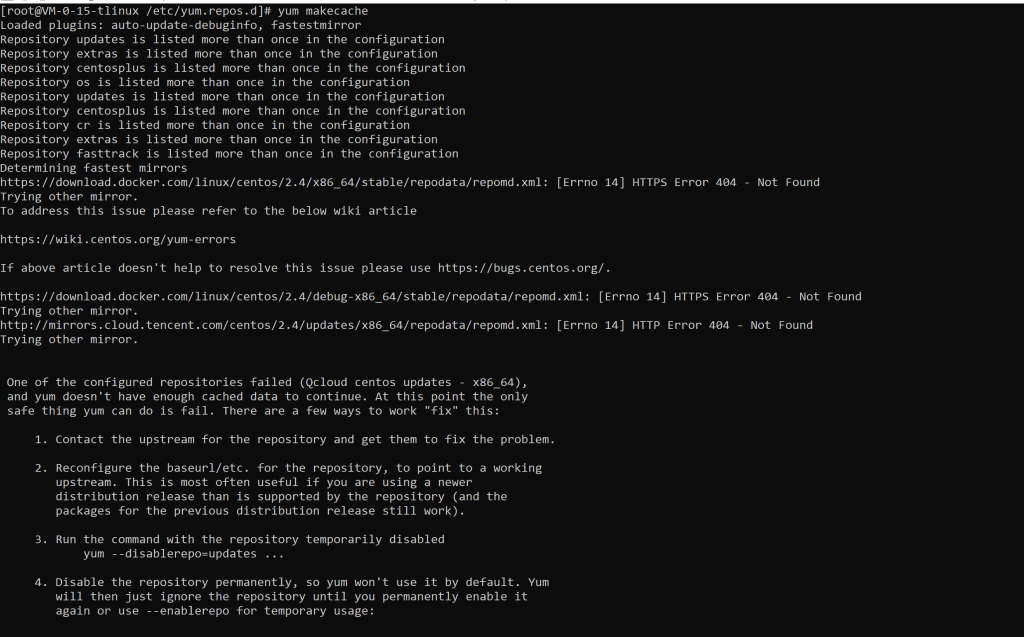 不知道是不是 CentOS7 停服的问题,兼容于 CentOS7 的 TencentOS Server 2.4 使用 yum 出现源错误的提示。